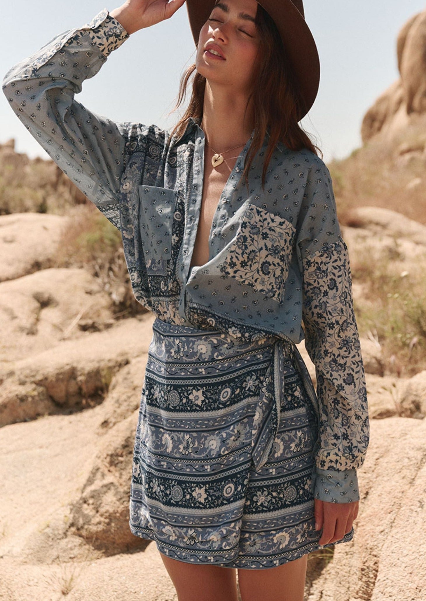 Floral Printed Bohemian Wrap Mini Skirts - ChicBohoStyle